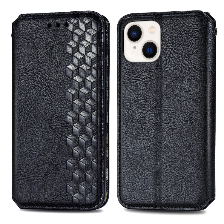Estuche para Teléfono iPhone 15 Pro Cuero Magnético Prensado con Rejilla Cúbica (Negro)