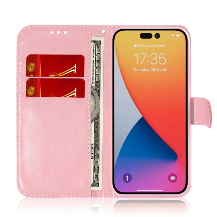 Funda de Cuero para iPhone 15 Pro con Hebilla Magnética Colorida (Rosa)