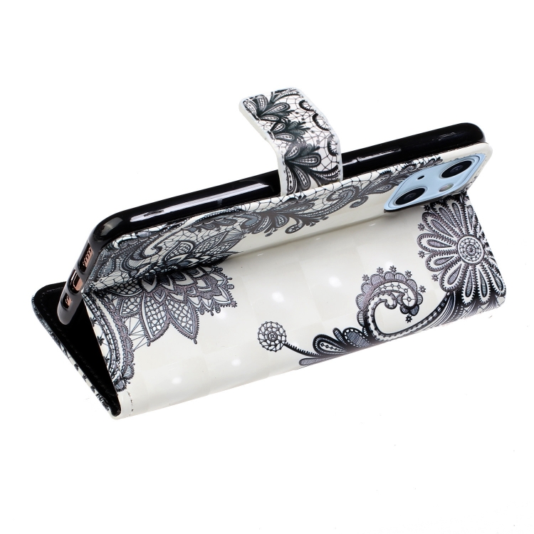 Funda de Teléfono iPhone 15 Pro Cuero Dibujo 3D En Relieve al Óleo (Flor de Encaje)