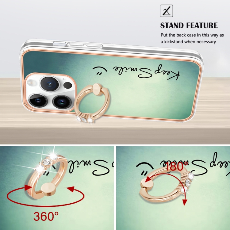 Caja de teléfono para iPhone 15 Pro Galvanoplastia IMD doble cara con soporte para anillo (Sonrisa)