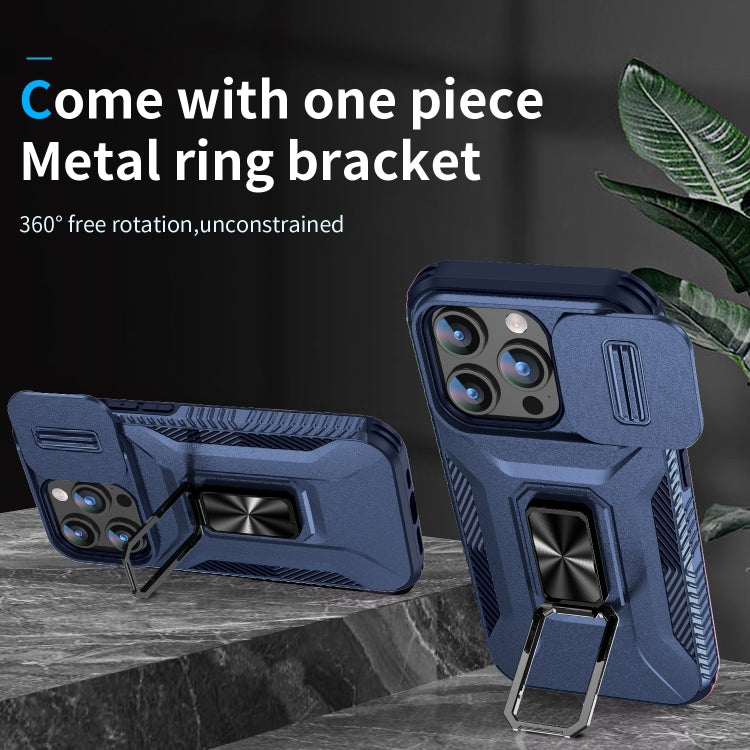 Estuche para Teléfono iPhone 15 Pro Max con Soporte Deslizante para Levas (Azul)