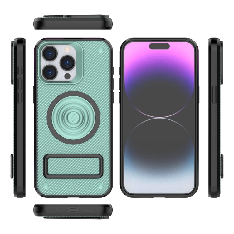 Funda para Teléfono iPhone 15 Pro Max PC + TPU con Textura de Fibra de Carbono y Soporte de Metal (Verde)