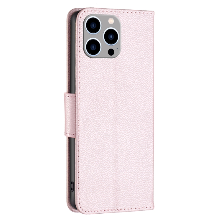 Funda de Cuero para iPhone 15 Pro Max Litchi Texture Flip Pure Color (Oro Rosa)