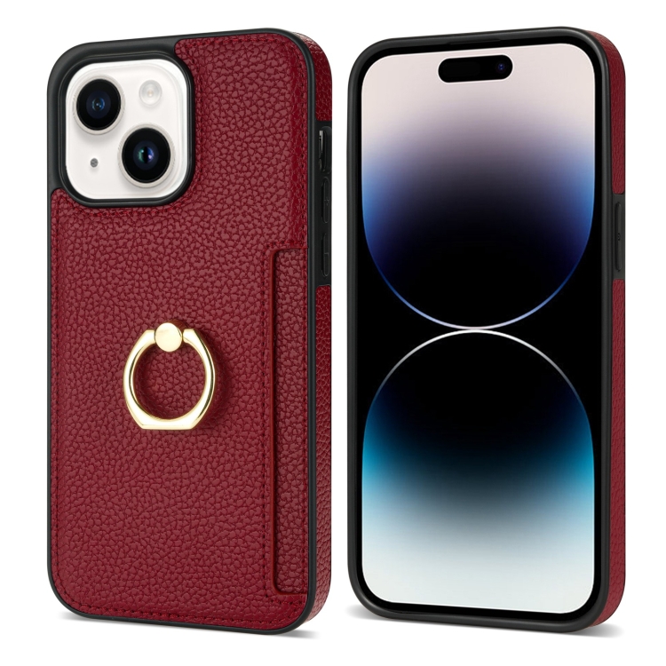 Funda Trasera para iPhone 15 Ring Card Litchi Cuero (Rojo)