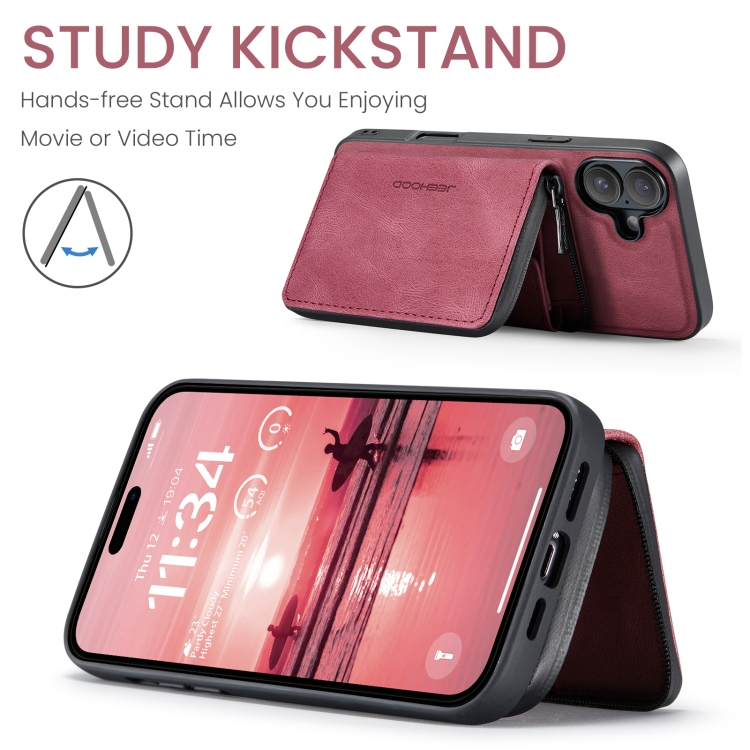 Funda para iPhone 16 Jeehood J02 Cuero con Tapa Horizontal y Cremallera Magnética (Rojo)