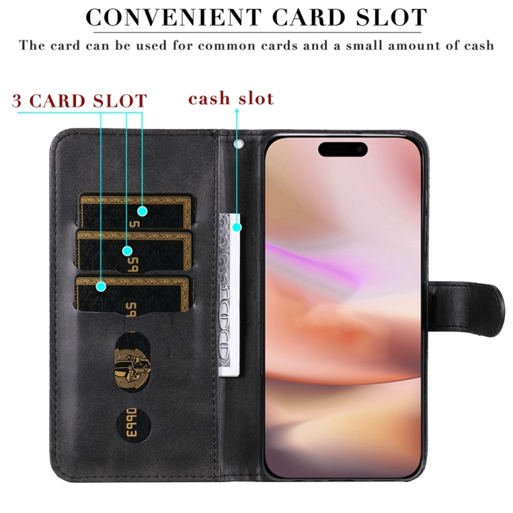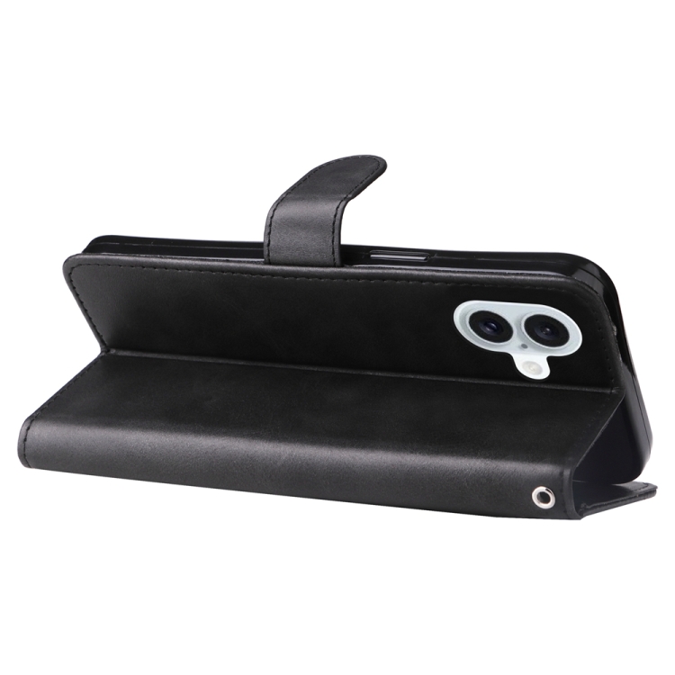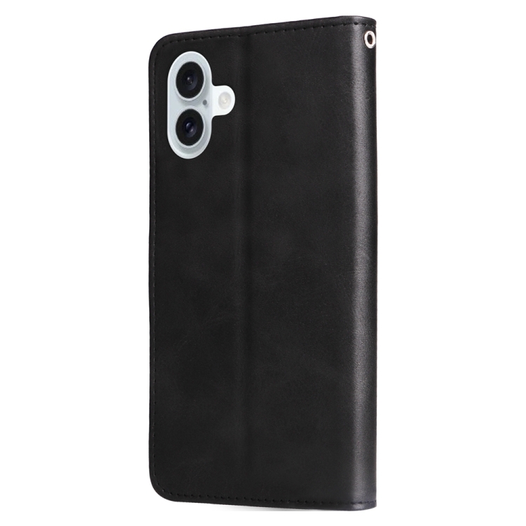 Funda para Teléfono iPhone 16 Plus Cuero con Cremallera y Textura de Becerro (Negro)
