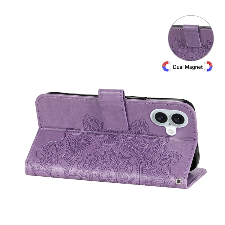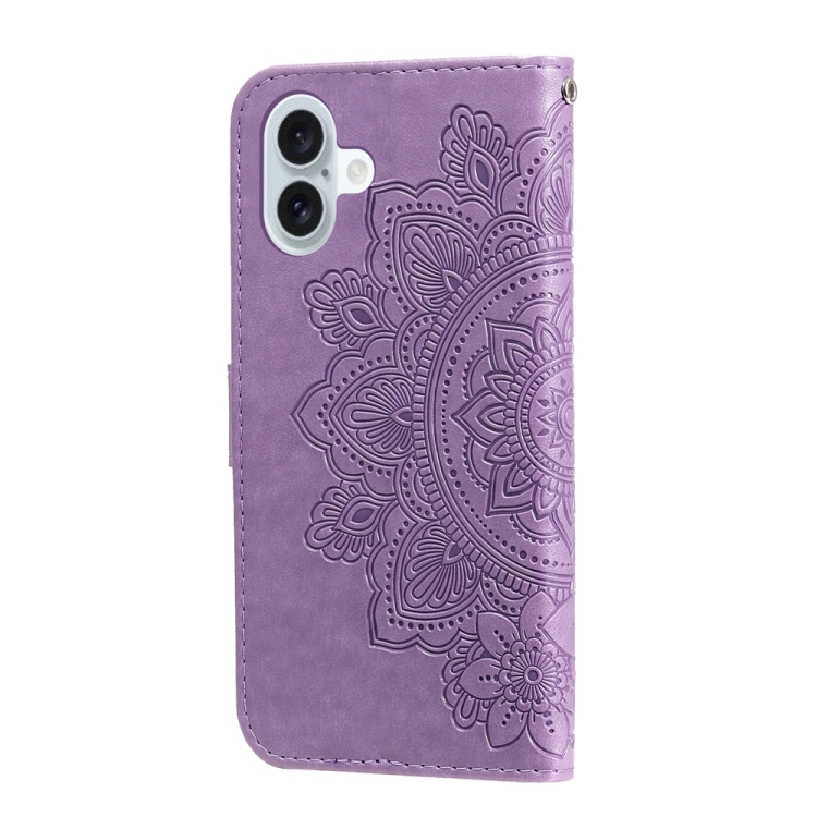 Funda para Teléfono iPhone 16 Plus Cuero Estampado Flores 7 Pétalos (Púrpura Claro)