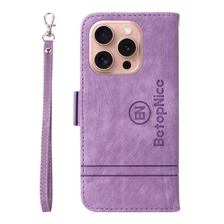 Funda para Teléfono Betopnice iPhone 16 Pro Cuero con Hebilla de Doble Lado (Púrpura)