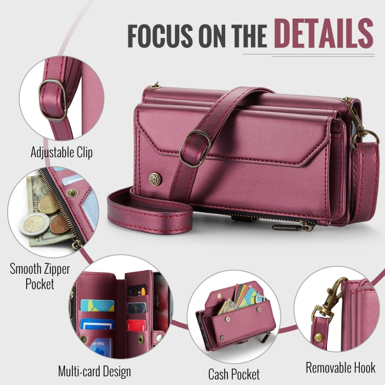 Estuche para Teléfono Caseme C36 para iPhone 16 Pro con Ranuras para Tarjetas y Cremallera Antirrobo Rfid (Rojo)