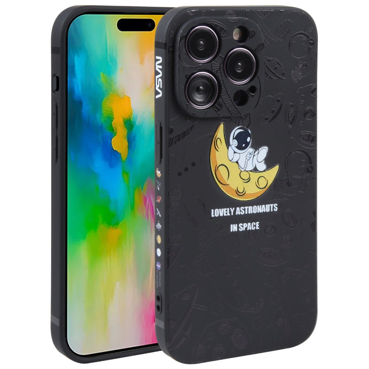 Funda para Teléfono iPhone 16 Pro Borde Recto Silicona Patrón Astronauta (Black)