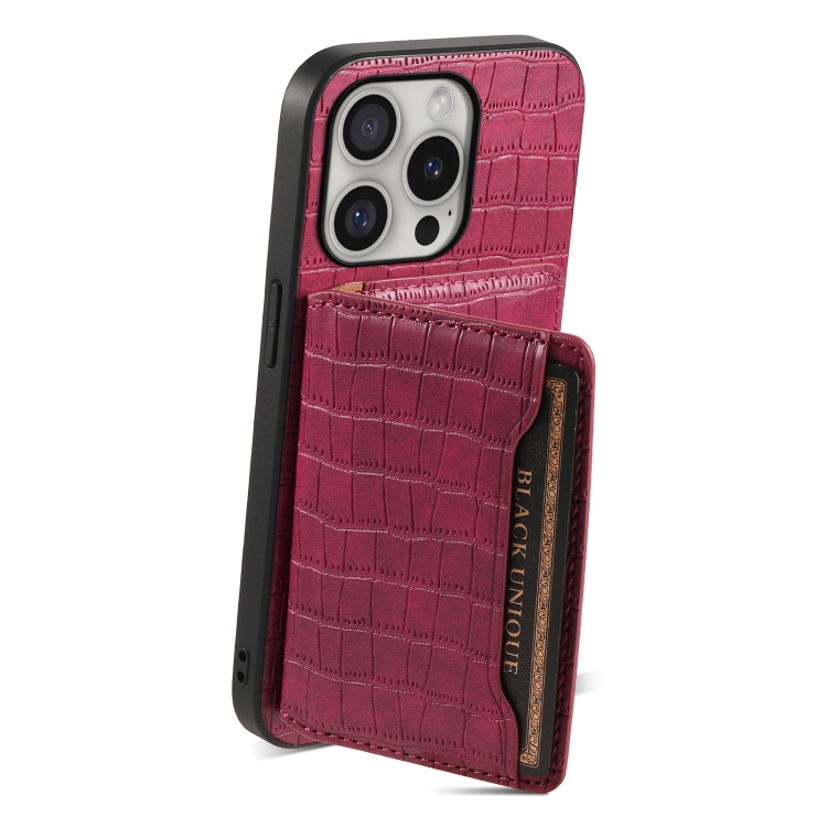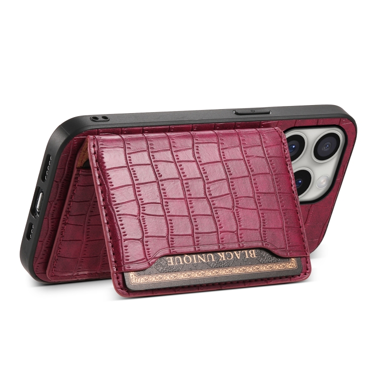 Estuche para Teléfono iPhone 16 Pro Max Diseño Bolsa para Tarjetas Textura Cocodrilo (Rojo)