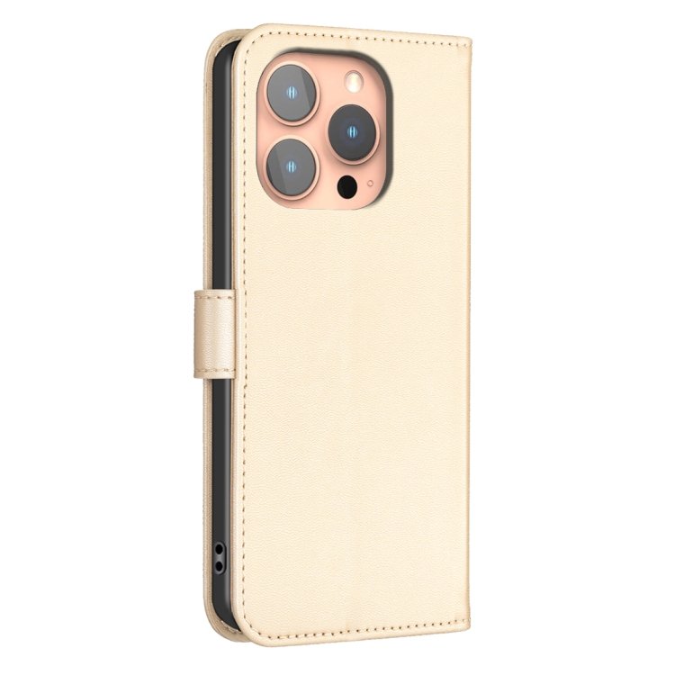 Funda para Teléfono iPhone 16 Pro Max Cuero con Relieve de Cuatro Hojas (Dorado)