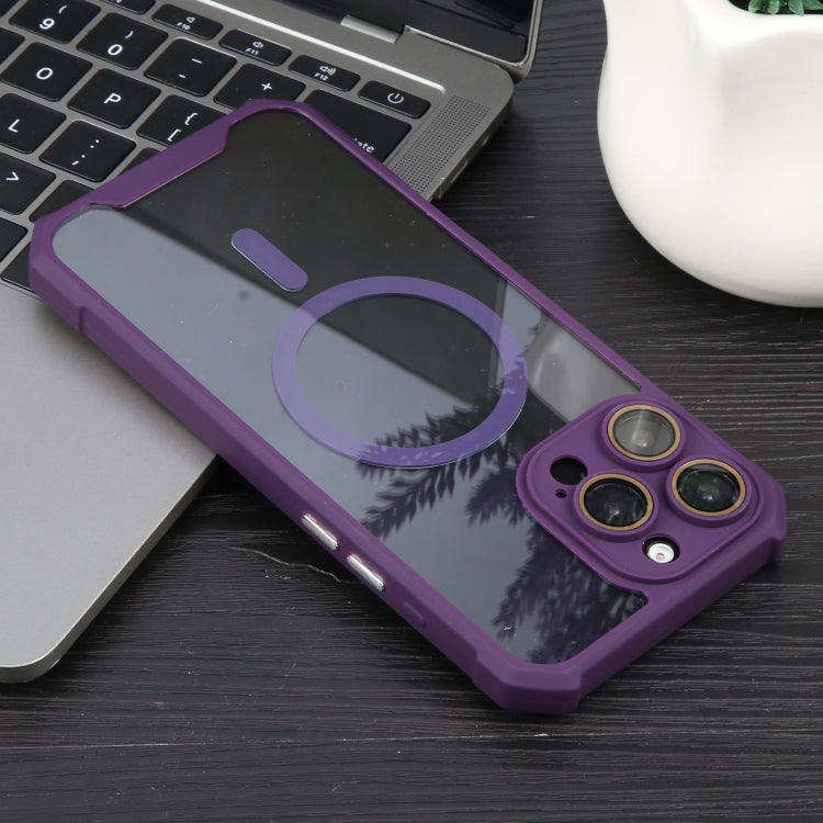 Funda para iPhone 16 Pro Max Acrílico TPU con Película Lente Dos Colores y Bocina Magnética Magsafe (Morado)