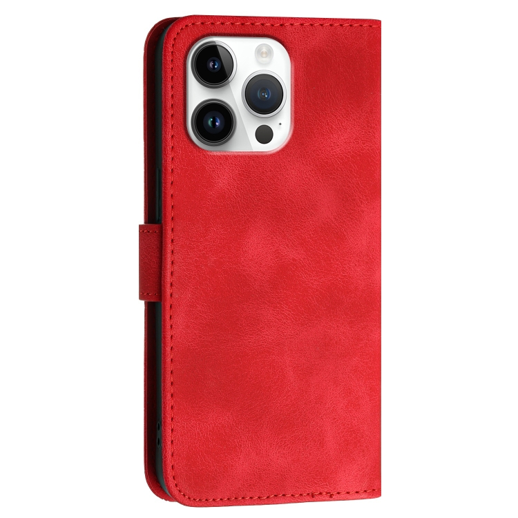 Funda de Cuero iPhone 16 Pro Max Yx0080 con Tapa Patrón Mariposa y Cuadrícula con Cordón (Rojo)
