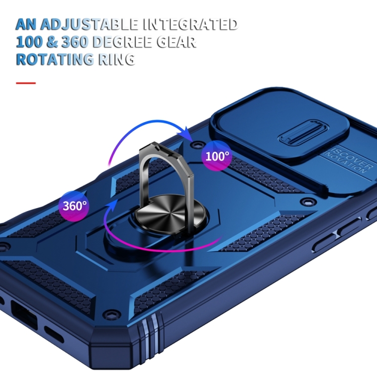 Funda para Teléfono iPhone 16 Pro Sliding Camshield TPU + PC con Soporte (Azul Marino)