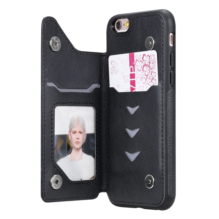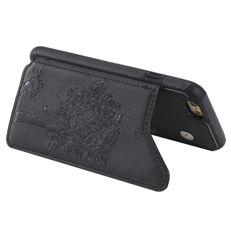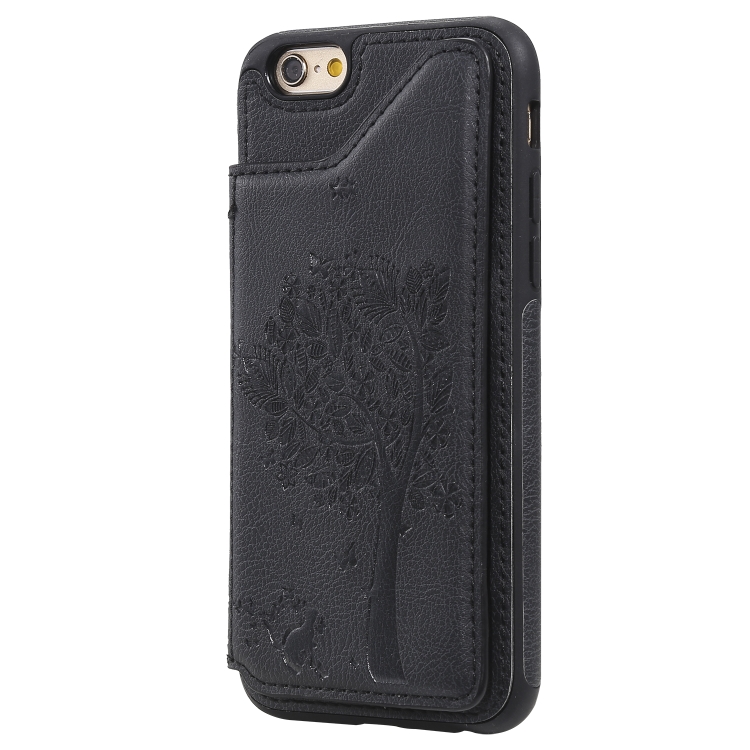 Funda Protectora para iPhone 6 y 6S con Patrón de Árbol de Gato, Ranuras para Tarjetas, Marco de Fotos y Soporte (Negro)