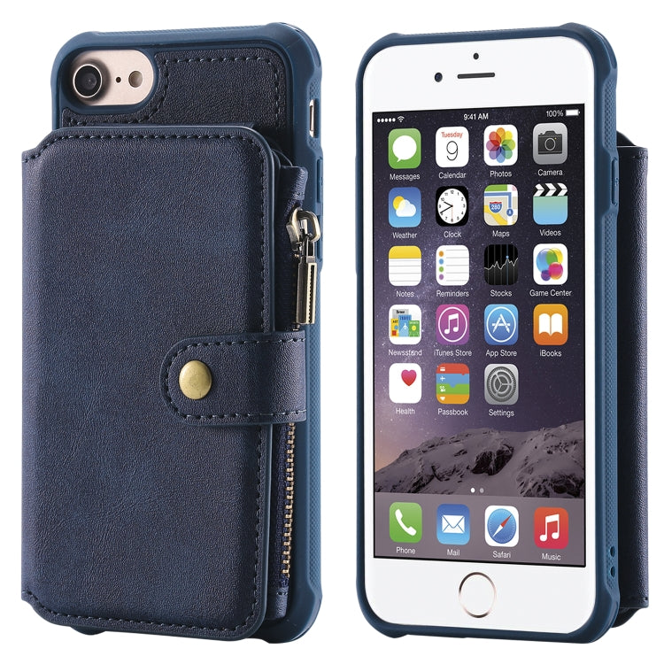 Funda Protectora para iPhone 6 con Cremallera Ranuras para Tarjetas Soporte Fotos Función Billetera (Azul)