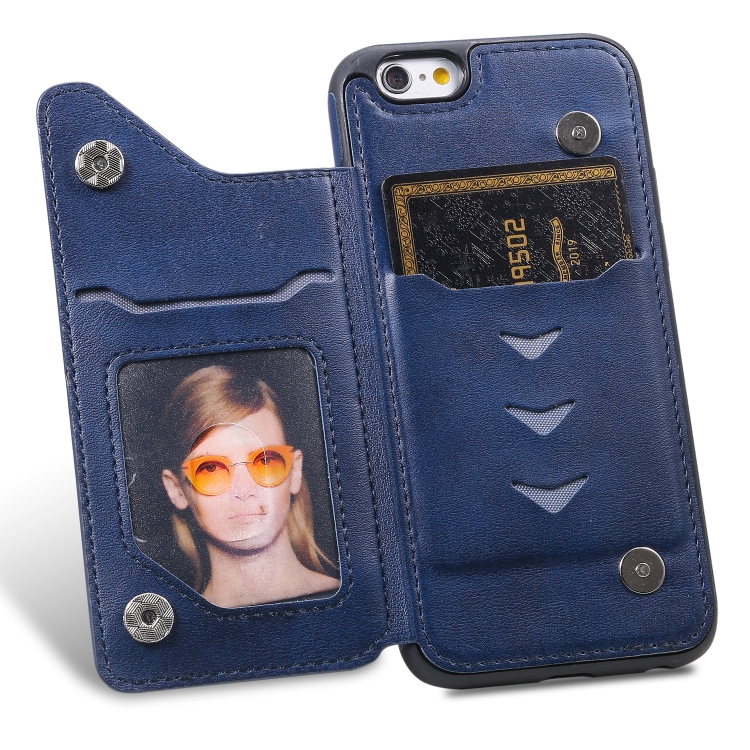 Funda Protectora para iPhone 6 con Textura de Pantorrilla, Soporte, Ranuras para Tarjetas y Marco (Azul)
