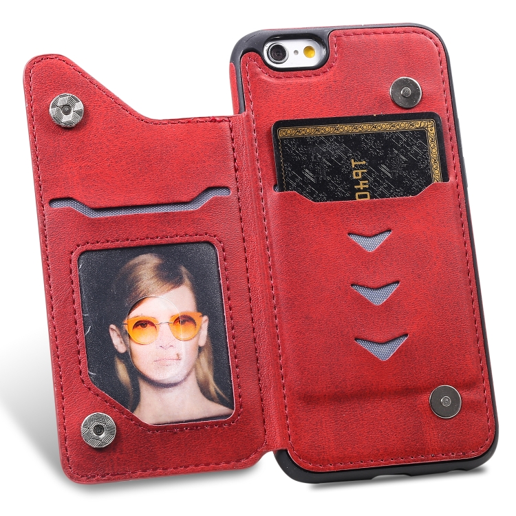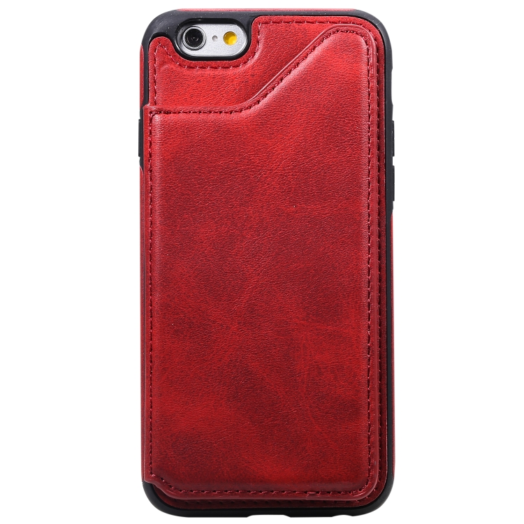 Funda Protectora iPhone 6 Textura Pantorrilla Soporte Ranuras Tarjetas Marco (Rojo)