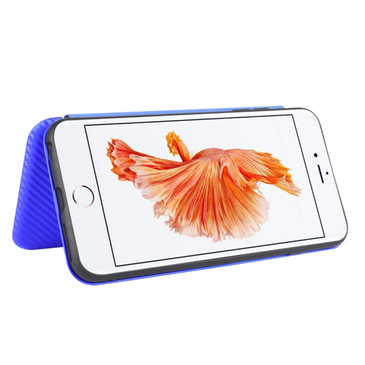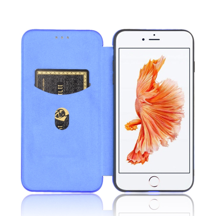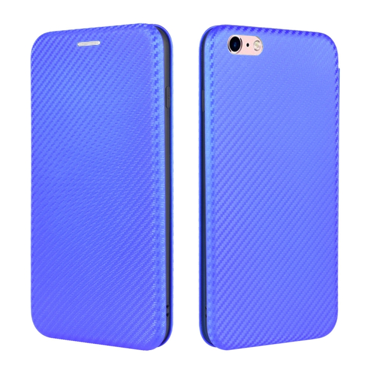 Funda para iPhone 6 Plus 6S Plus Textura Fibra de Carbono Flip Horizontal Magnético TPU PC Cuero PU Ranura Tarjeta (Azul)