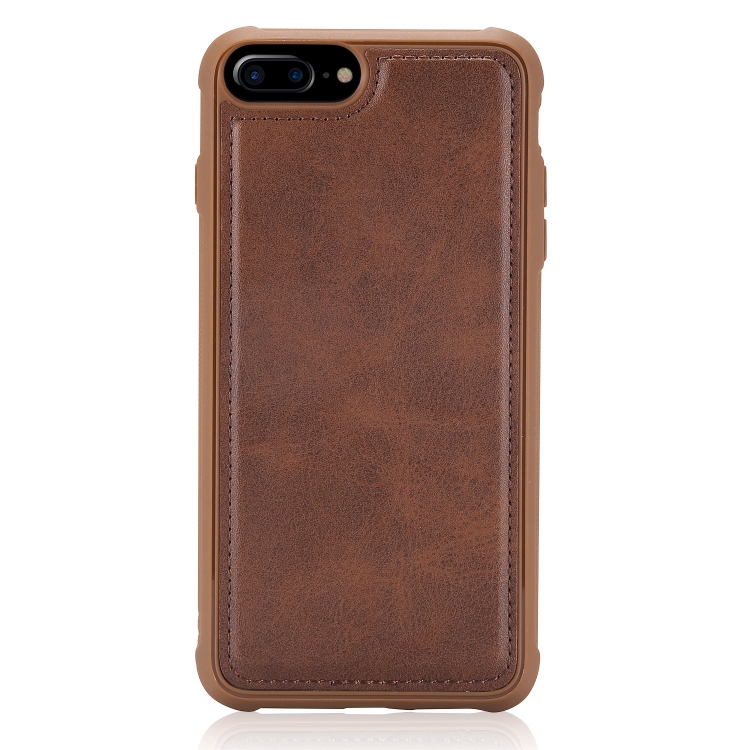 Estuche de Cuero Abatible Horizontal Magnético para iPhone 6 Plus 7 Plus 8 Plus con Ranuras para Tarjetas Soporte Billetera Marco de Fotos (Café)