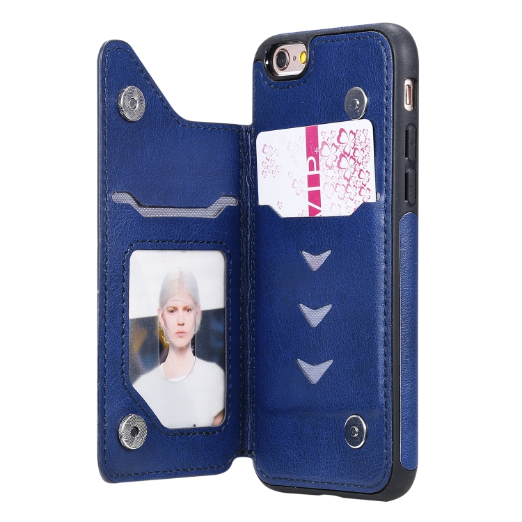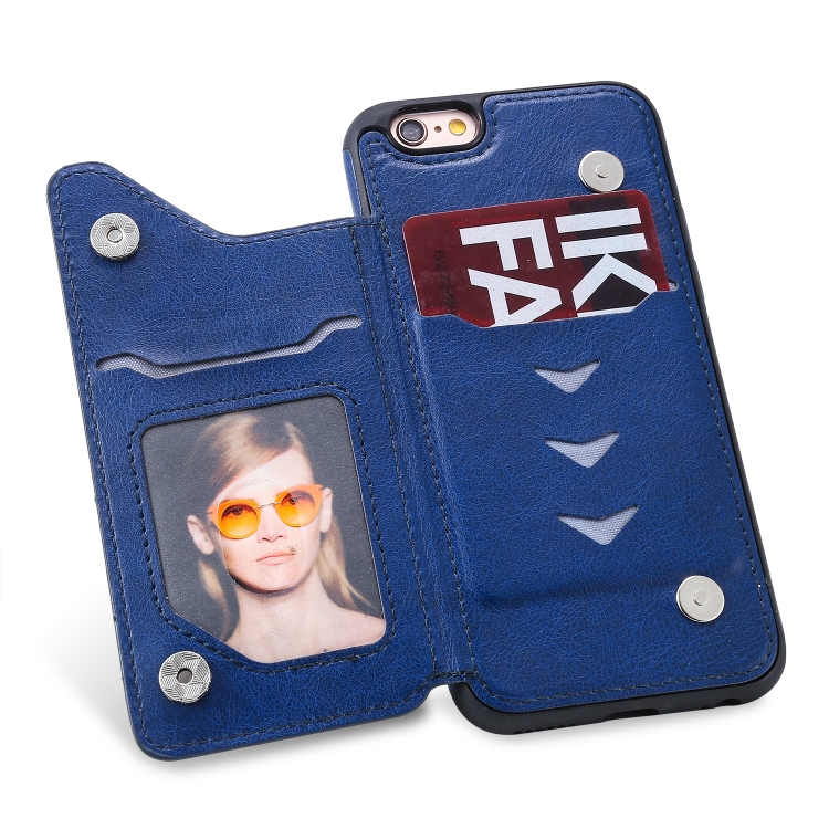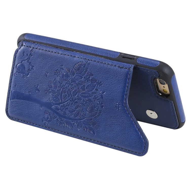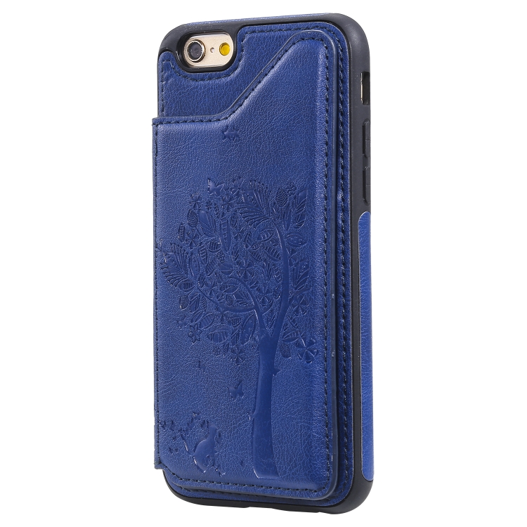 Funda Protectora para iPhone 6 y 6S con Patrón Relieve Árbol de Gato, Ranuras para Tarjetas, Marco de Fotos y Soporte (Azul)