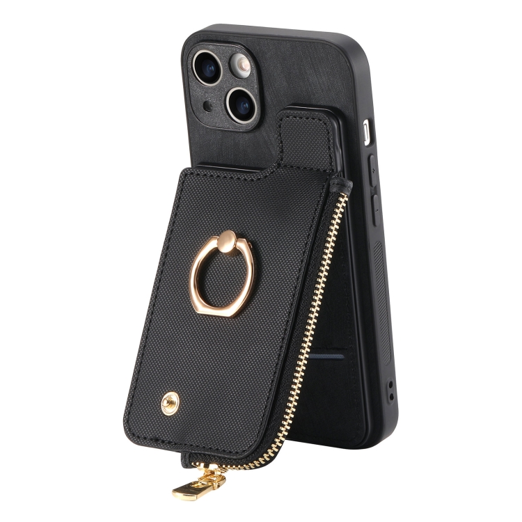 Estuche para Teléfono iPhone 7/8 SE 2022 con Billetera, Cremallera Vertical y Anillo de Cuero Cruzado (Negro)