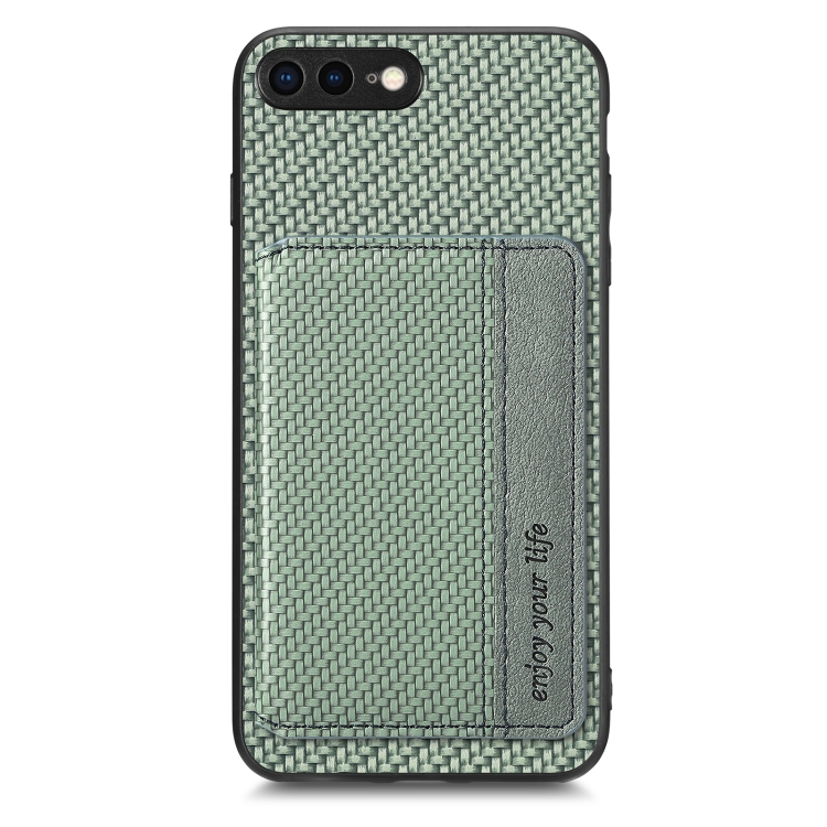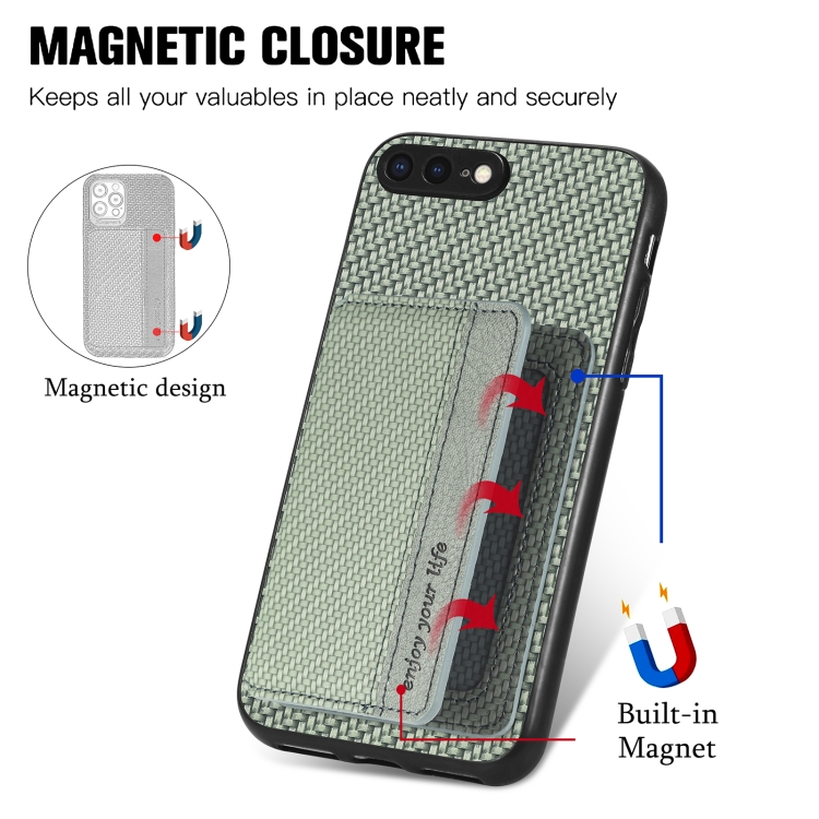Caja de teléfono para iPhone 7 Plus y 8 Plus con bolsa de tarjeta magnética de fibra de carbono (Verde)