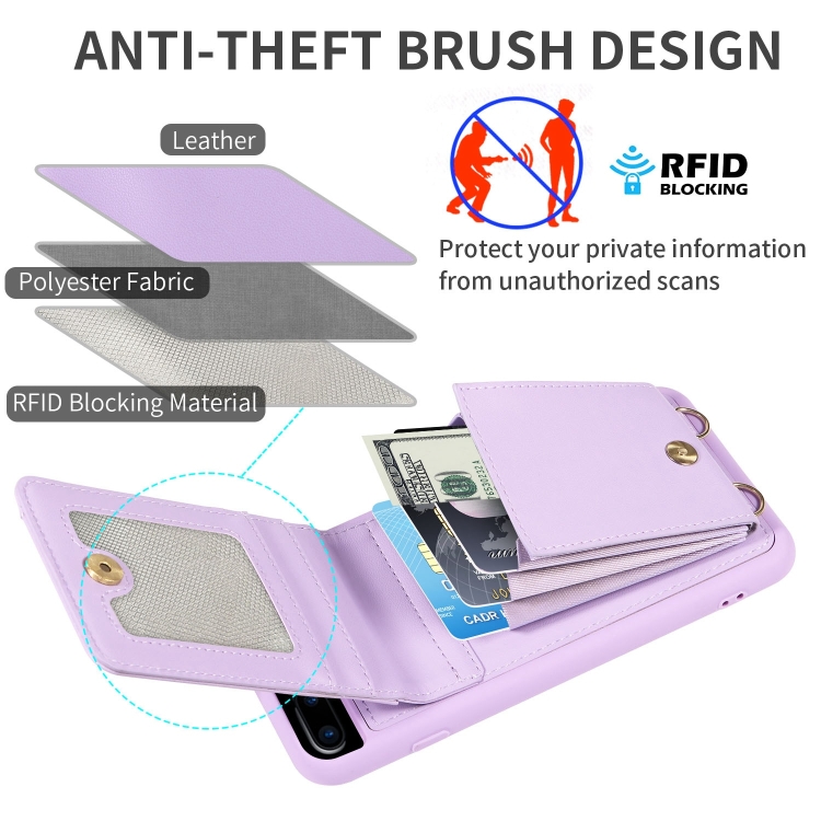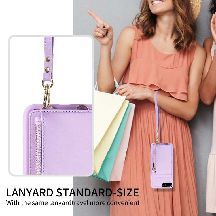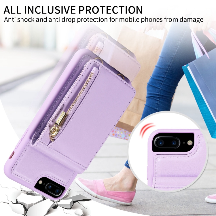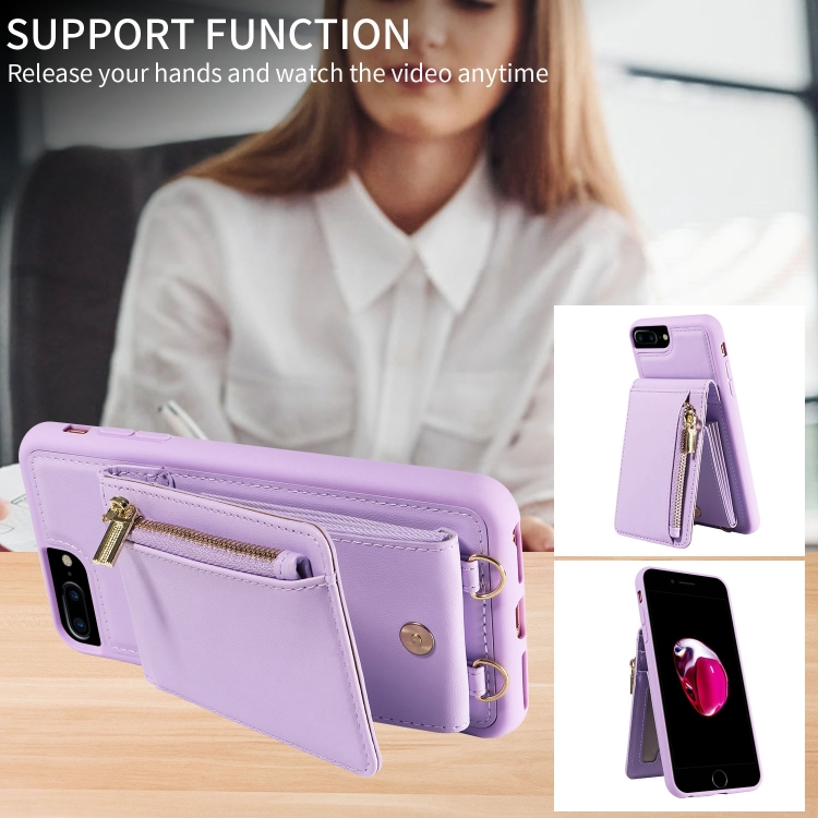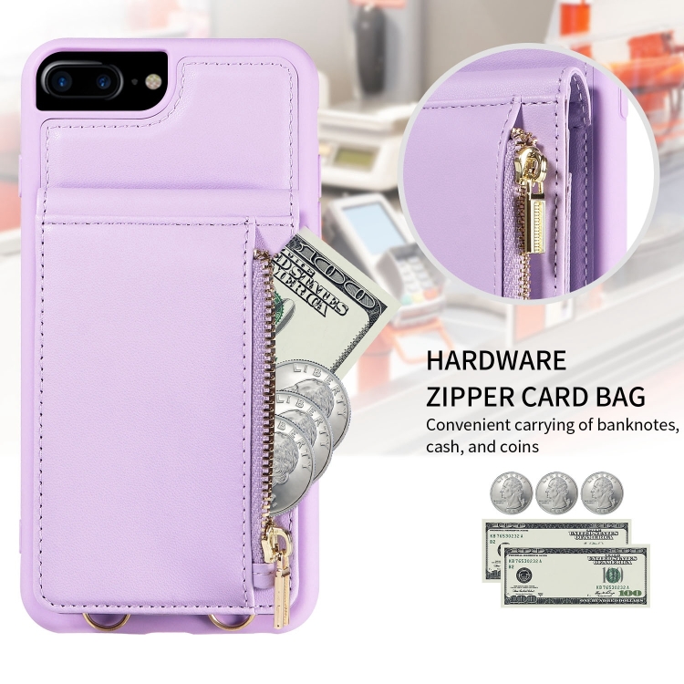 Funda de Cuero Crossbody Lanyard Zipper Wallet para iPhone 7 Plus y 8 Plus (Púrpura)