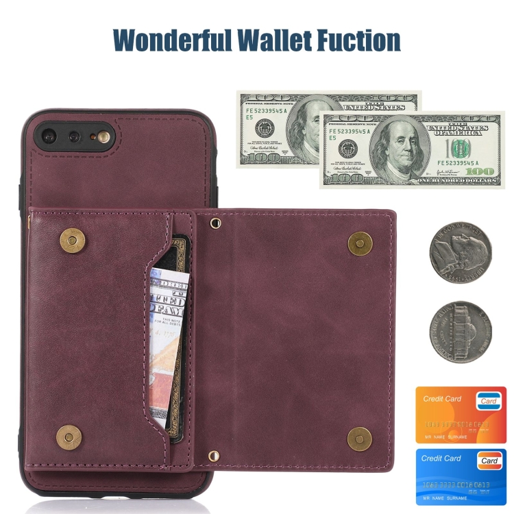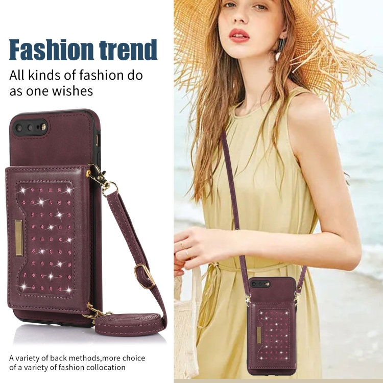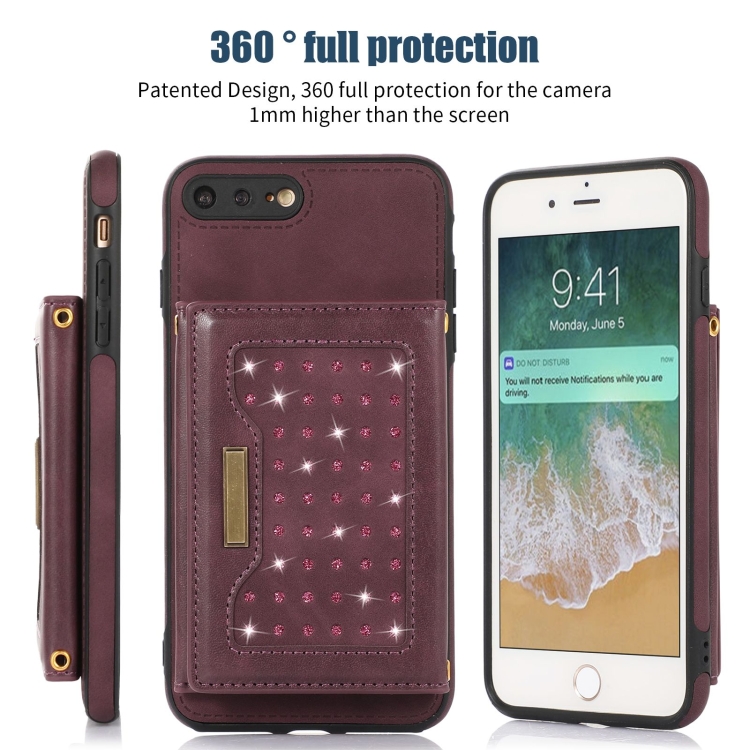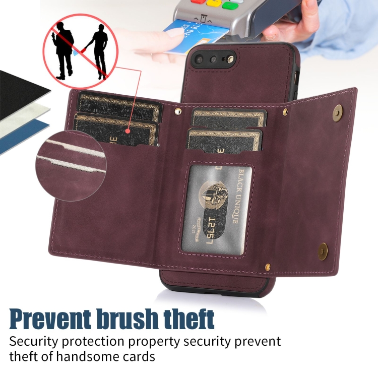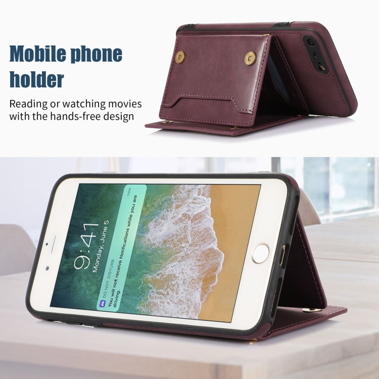 Estuche de Teléfono Cuero Rfid para iPhone 7 Plus 8 Plus Tres Pliegues con Cordón (Rojo)