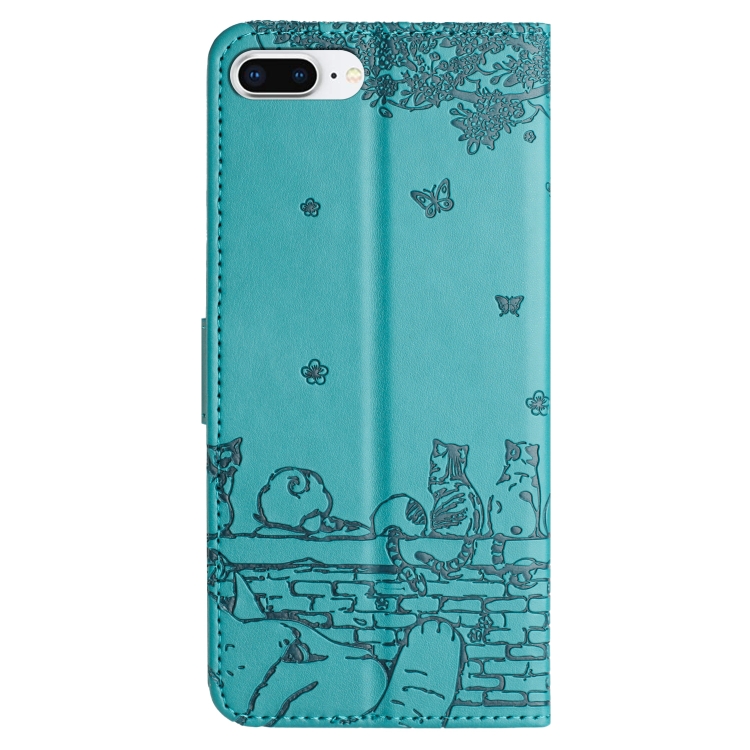 Estuche para Teléfono iPhone 7 Plus 8 Plus Cuero Estampado Gato En Relieve con Cordón (Azul)