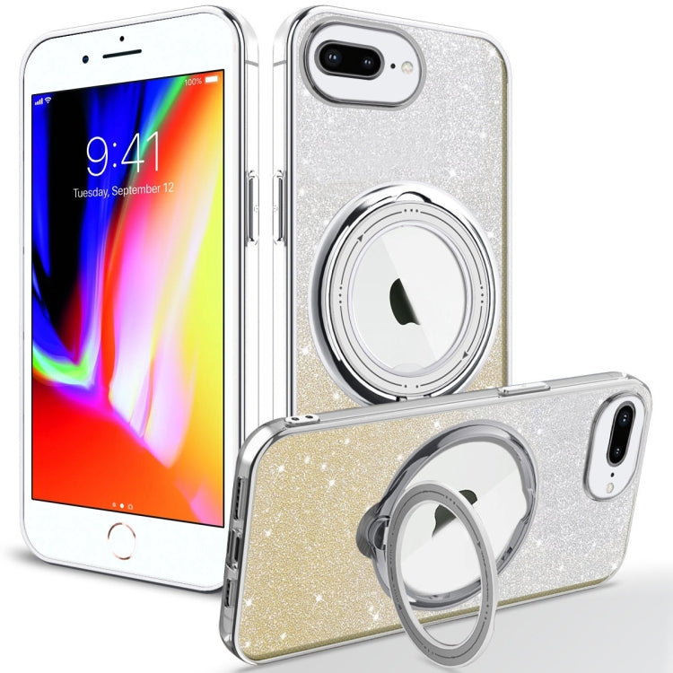 Funda para Teléfono TPU iPhone 7 Plus 8 Plus con Brillo Degradado y Soporte Magsafe con Rotación (Dorado)