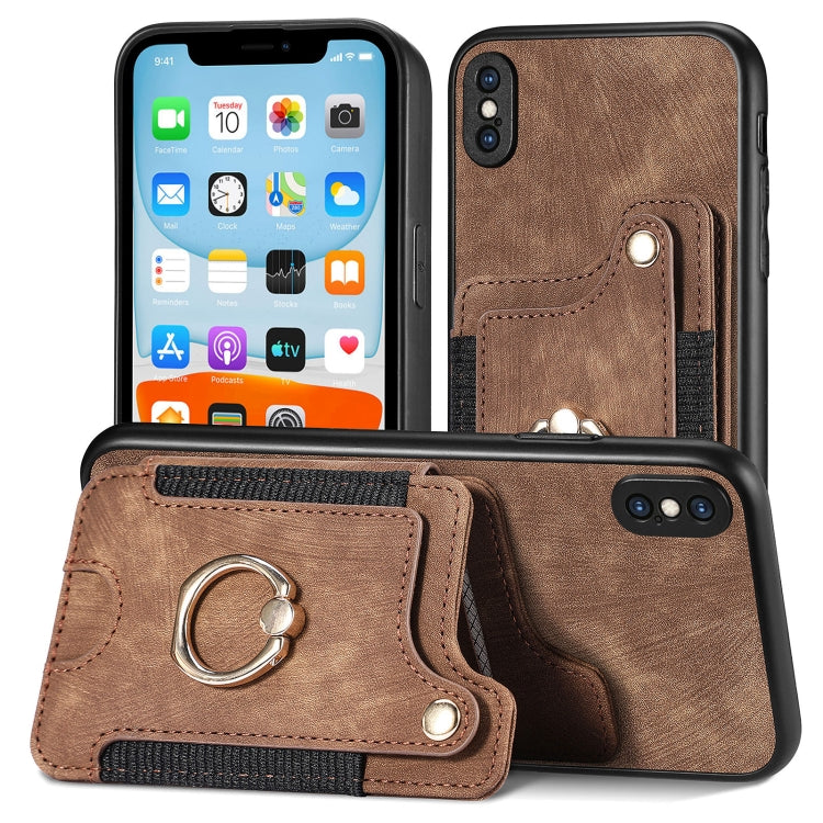 Funda para iPhone 7 Plus 8 Plus Retro Skin-Feel Ring Multi-Card Wallet (Marrón)