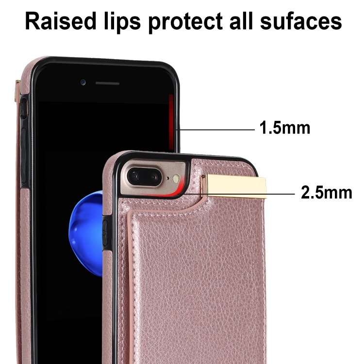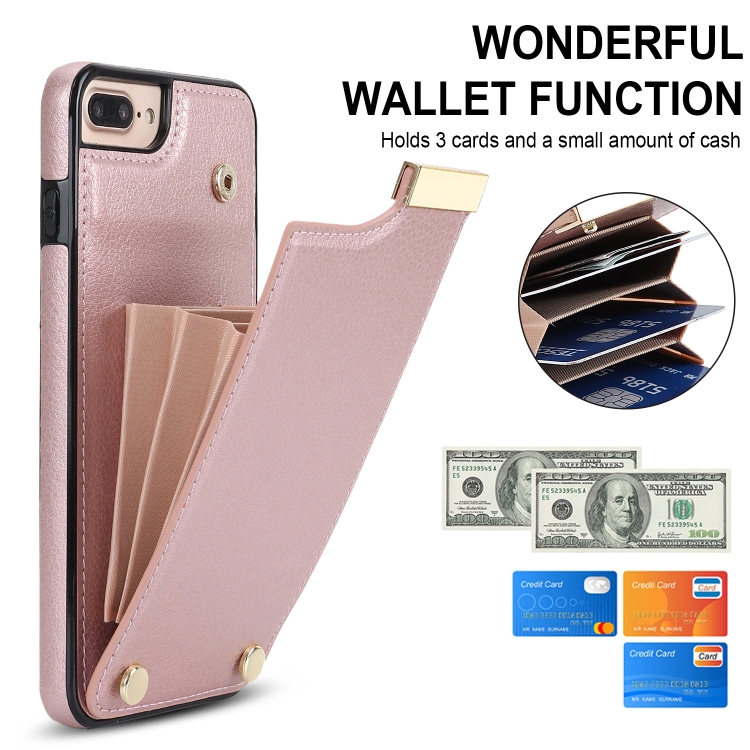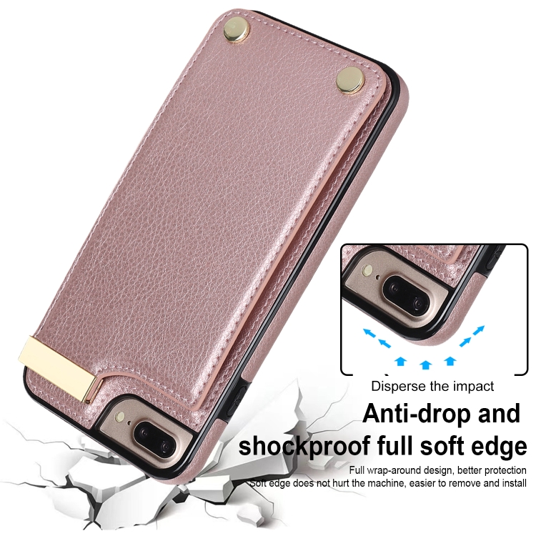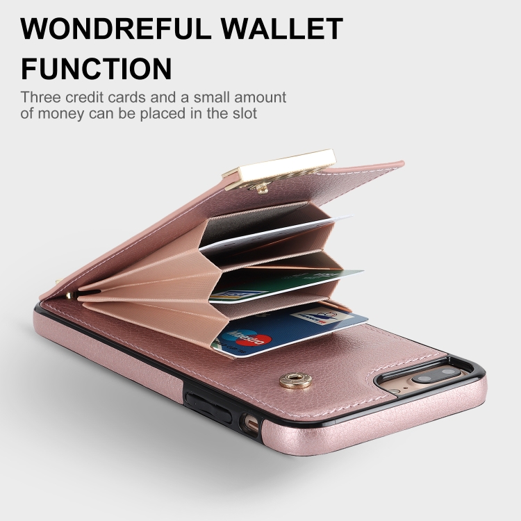 Caja de Teléfono para iPhone 8 Plus y 7 Plus con Ranuras para Tarjetas y Hebilla de Metal (Oro Rosa)
