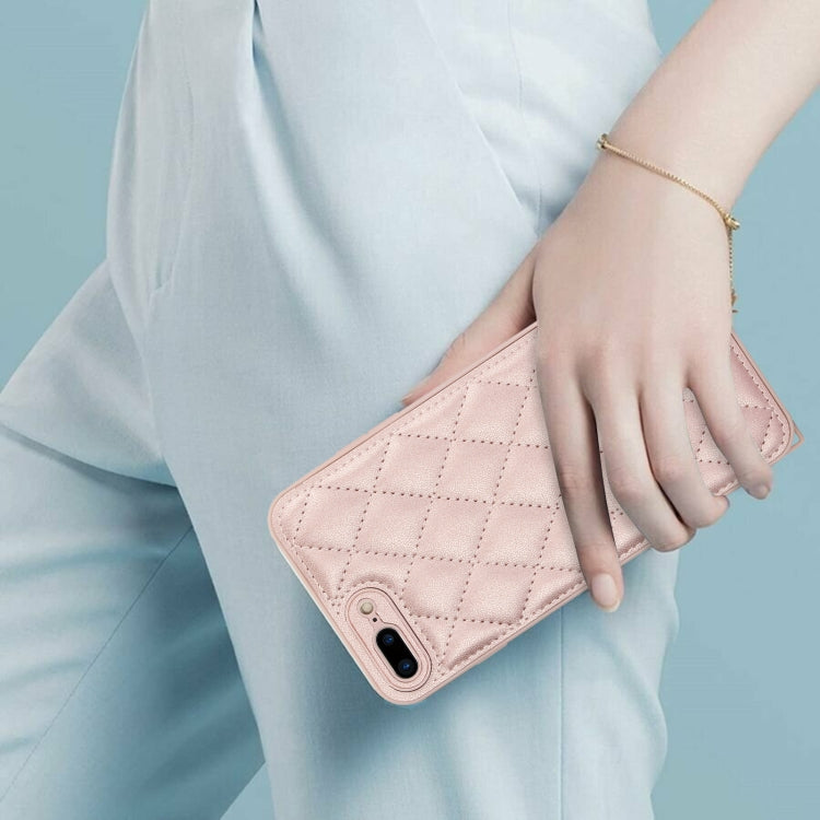 Funda para Teléfono iPhone 8 Plus/7 Plus Textura Rómbica y Cordón Doble (Oro Rosa)