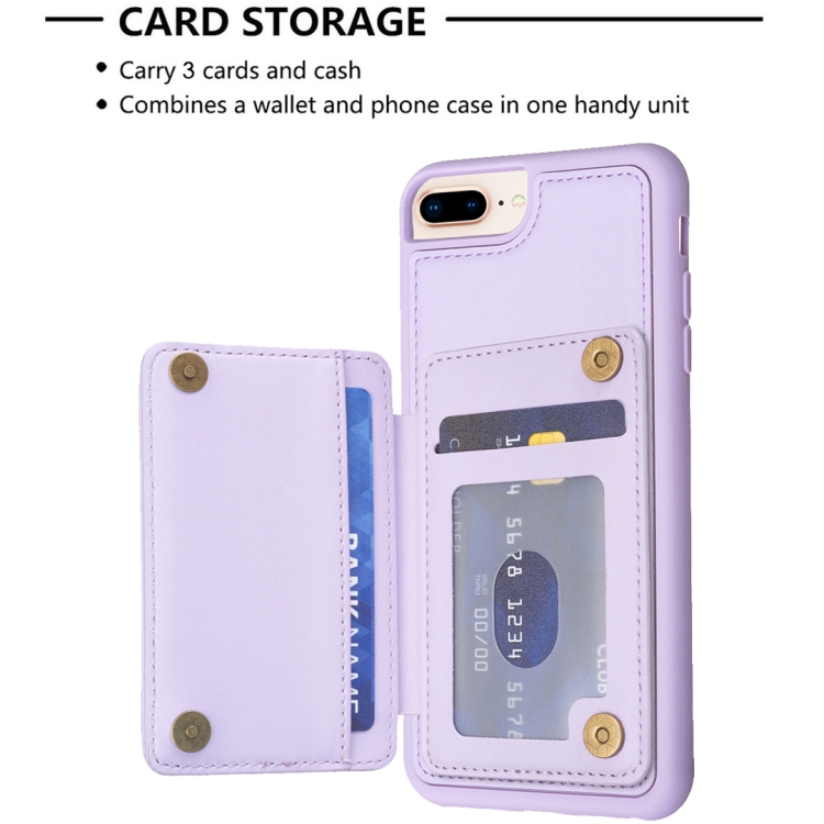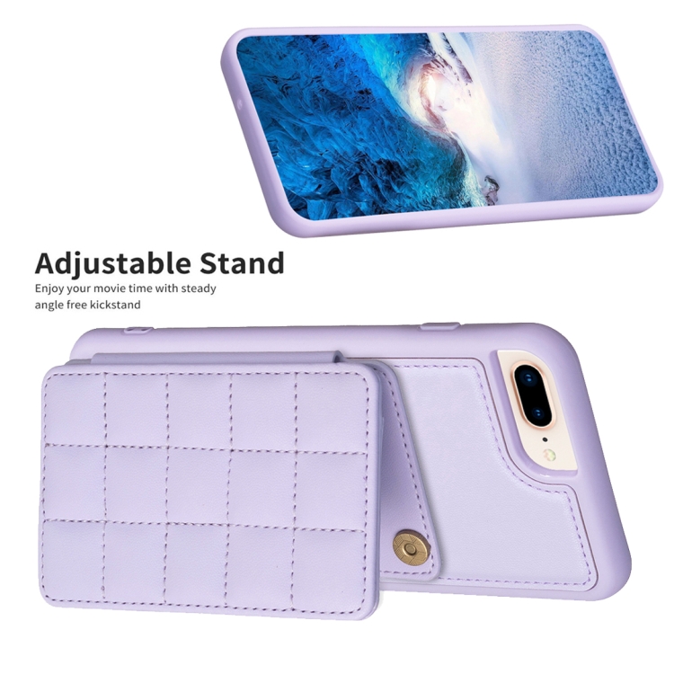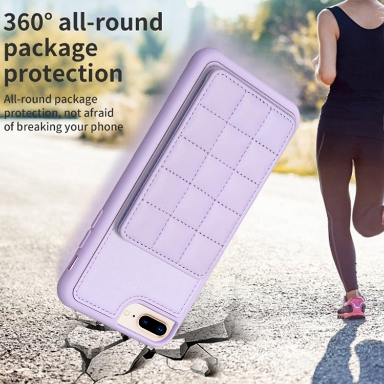 Funda para teléfono iPhone 8 Plus 7 Plus Grid Card Slot Holder (Púrpura Claro)