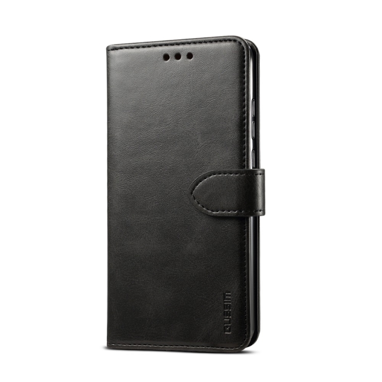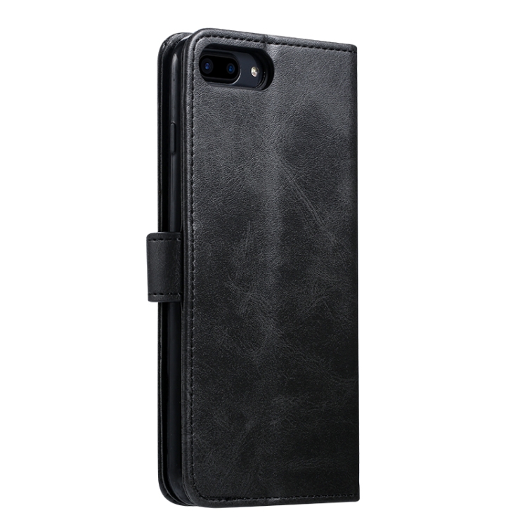Estuche de cuero Gussim para iPhone 8 Plus y 7 Plus con tapa horizontal magnética, soporte y ranuras para tarjetas y billetera (Negro)