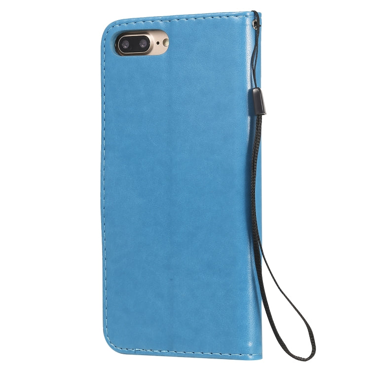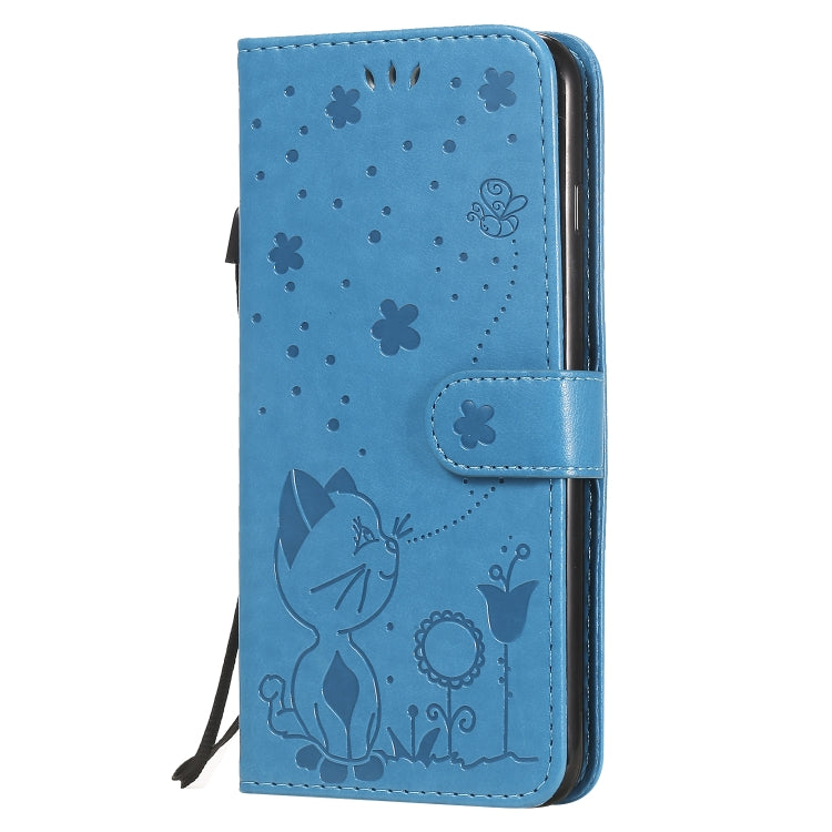 Funda de Cuero para iPhone 8 Plus y 7 Plus Patrón Abeja y Gato con Tapa Horizontal Soporte Ranuras y Billetera (Azul)