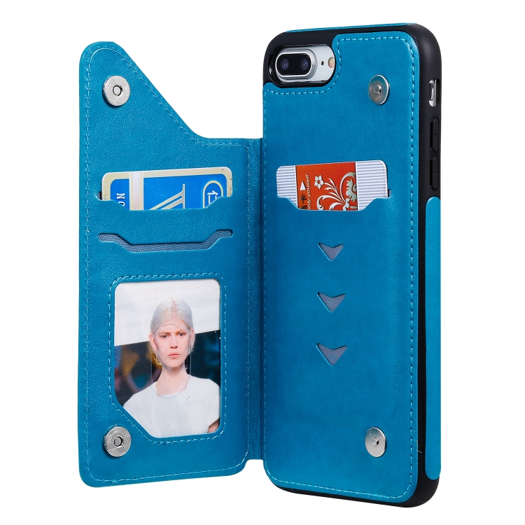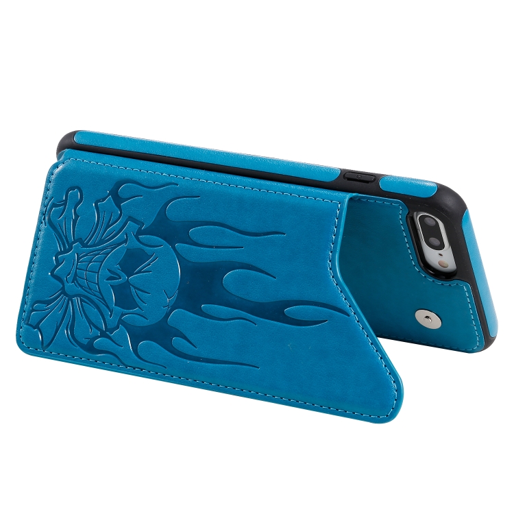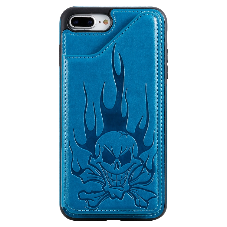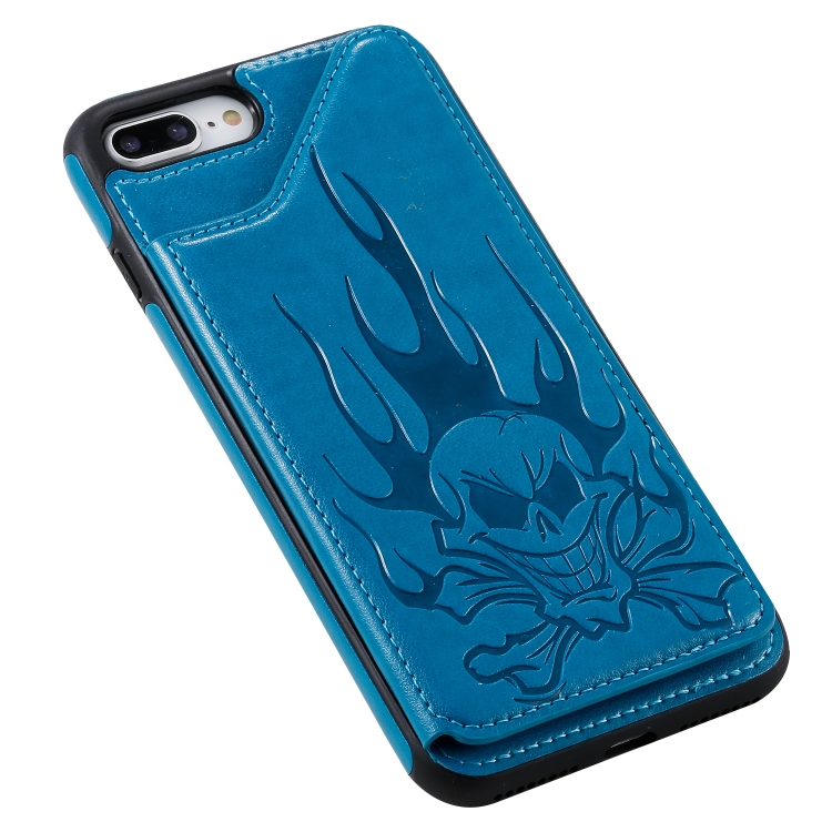 Estuche Protector para iPhone 8 Plus / 7 Plus Skull Head con Soporte y Ranuras para Tarjetas (Azul)