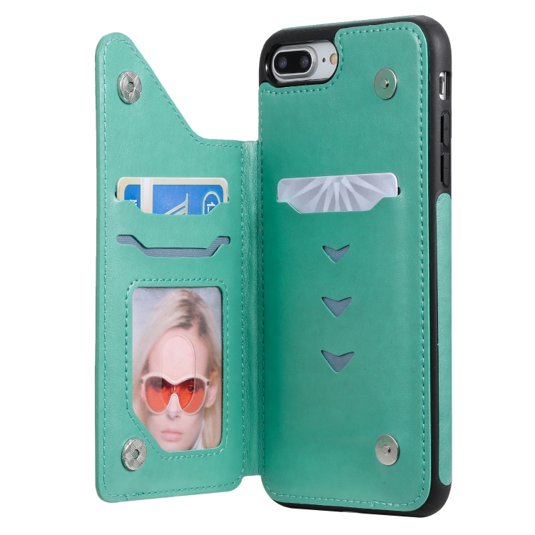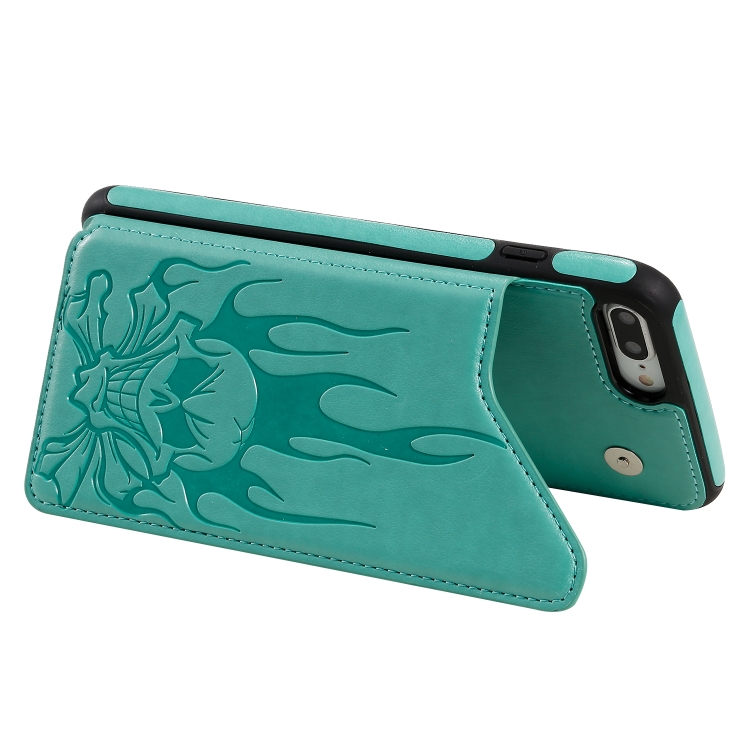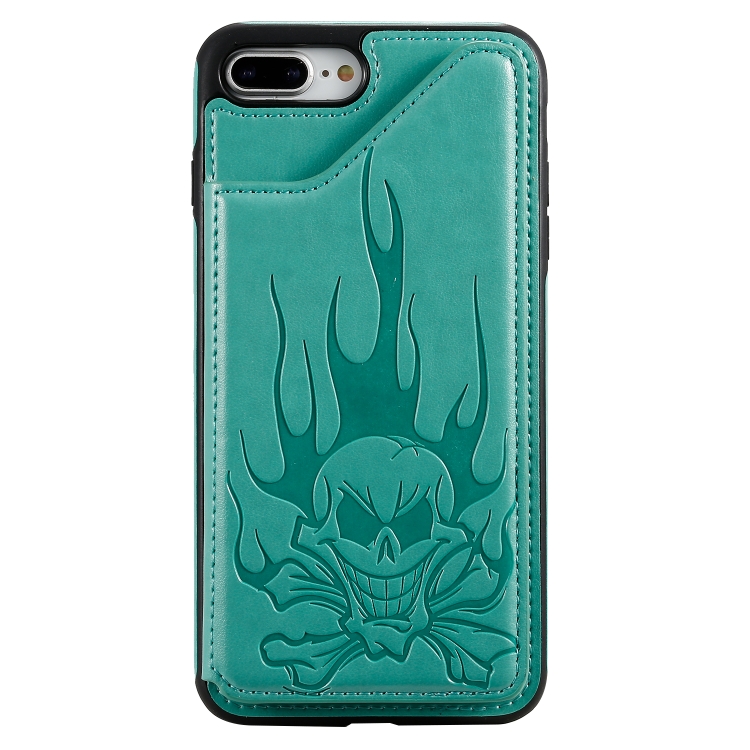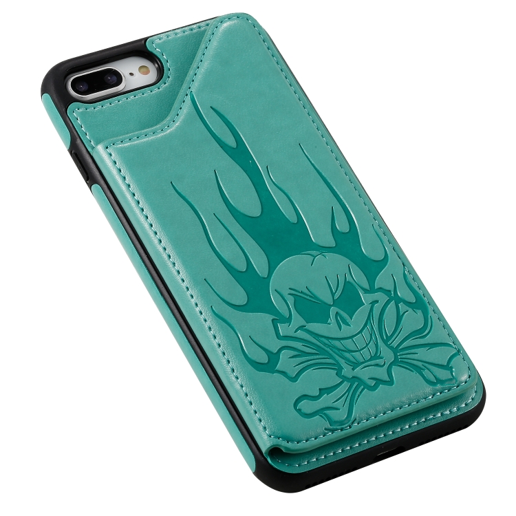 Estuche Protector para iPhone 8 Plus y 7 Plus Skull Head a Prueba de Golpes con Soporte y Billetera (Verde)