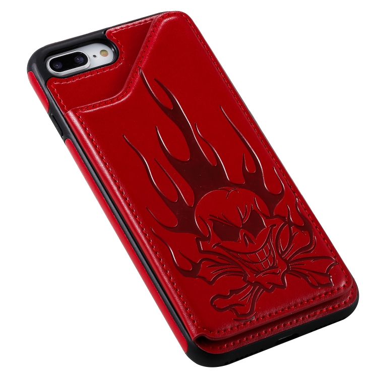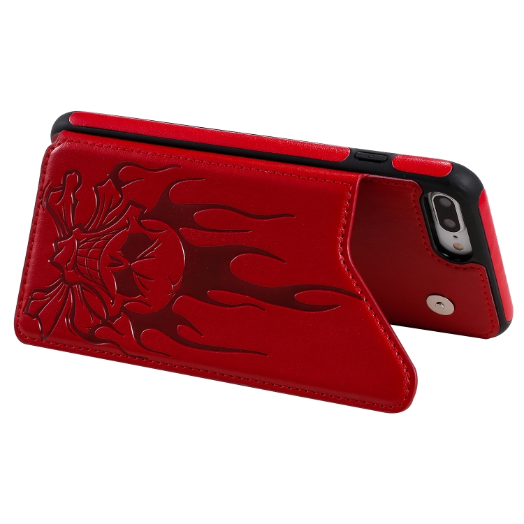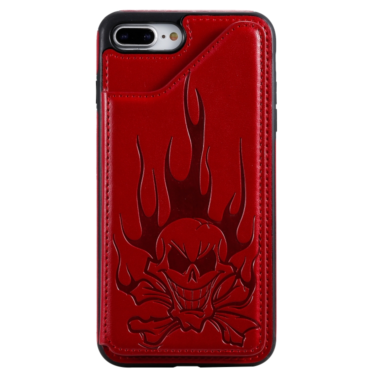 Estuche Protector para iPhone 8 Plus y 7 Plus Skull Head Patrón En Relieve a Prueba de Golpes con Soporte y Ranuras para Tarjetas (Rojo)