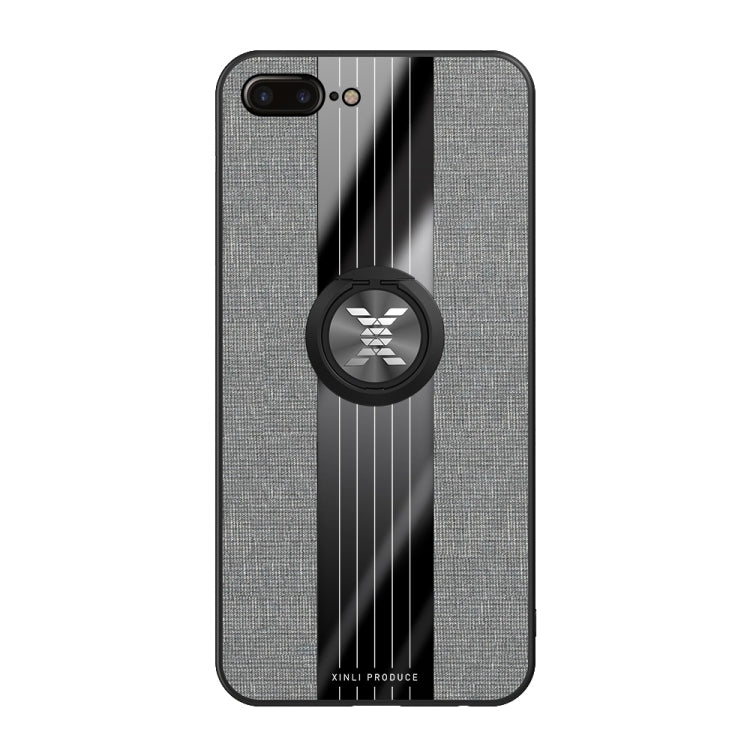 Funda Protectora TPU Xinli para iPhone 8 Plus y 7 Plus Textura Tela Costura Soporte Anillo (Gris)