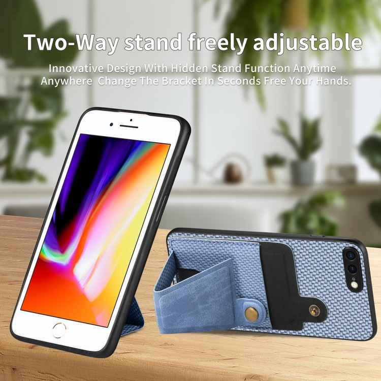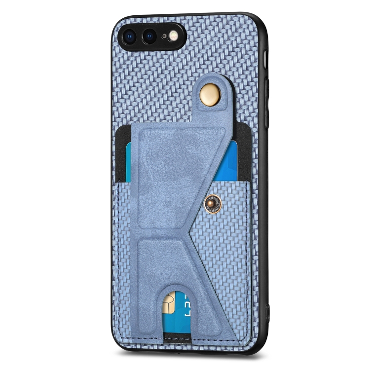 Funda de teléfono iPhone SE 2022/2020/7/8 con soporte en forma de K y billetera de fibra de carbono (Azul)