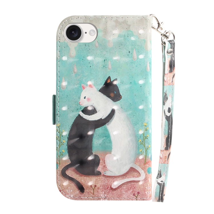 Funda de Cuero con Tapa Horizontal para iPhone 16E (Gato Blanco y Negro)