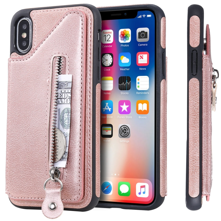 Funda Protectora para iPhone X Doble Hebilla Cremallera a Prueba de Golpes (Oro Rosa)