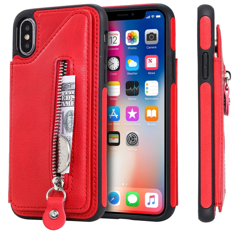 Funda Protectora iPhone X Doble Hebilla Cremallera a Prueba de Golpes (Rojo)