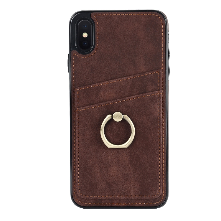 Funda de Teléfono iPhone X Cuero Parche Vintage Soporte para Anillo (Marrón)