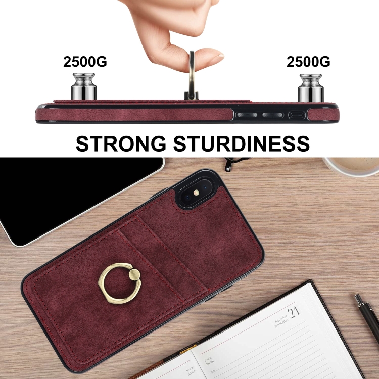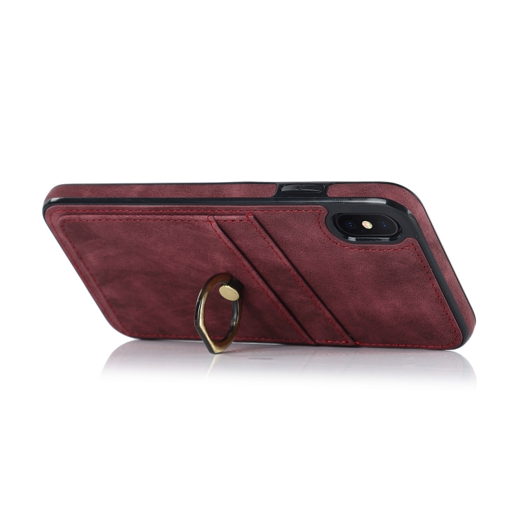Funda de Teléfono iPhone X Cuero Parche Vintage Soporte para Anillo (Rojo)