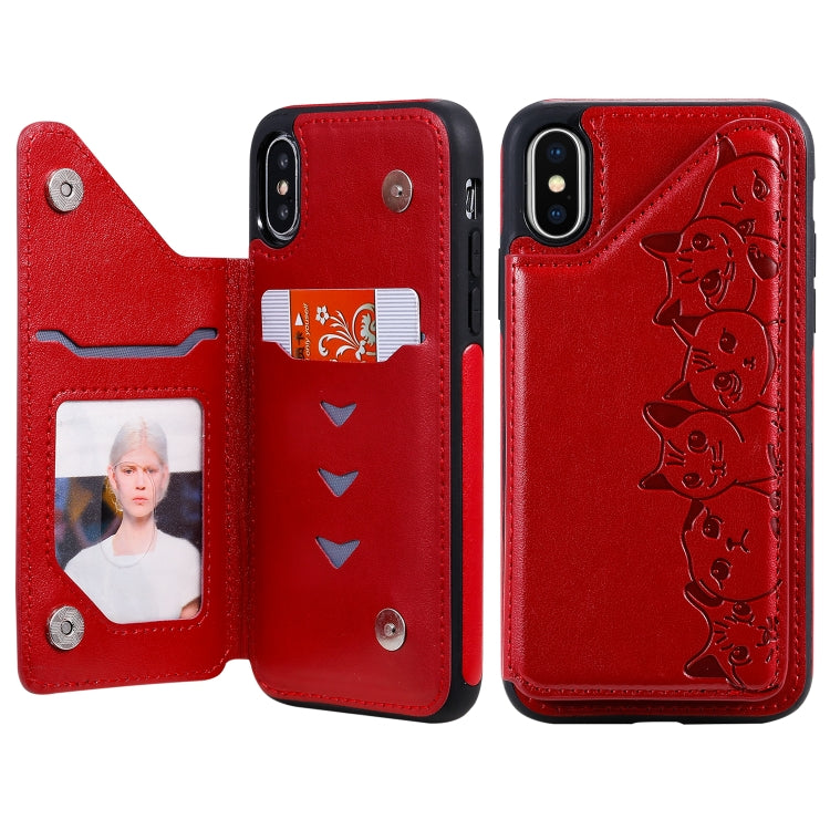 Estuche Protector para iPhone X Six Cats con Patrón en Relieve Soporte Ranuras para Tarjetas y Marco de Fotos (Rojo)