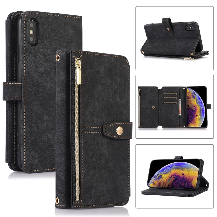 Funda para iPhone X Xs Dream 9-Card Wallet Zipper Bag Cuero (Negro)